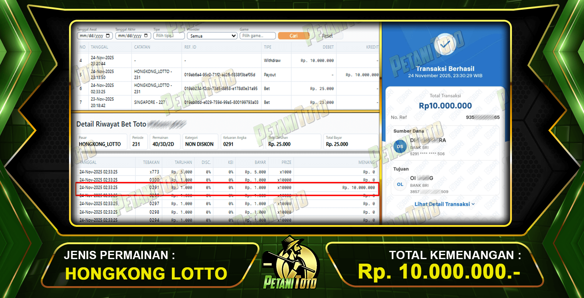 BUKTI CUAN TOGEL HONGKONG LOTTO PETANITOTO 10 JUTA